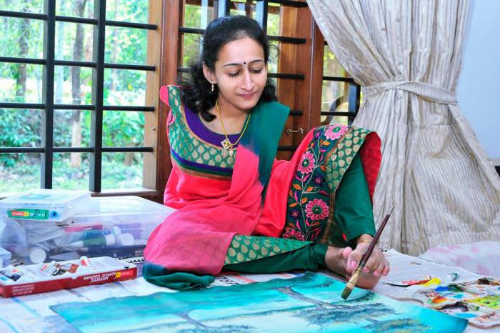 Трудно поверить в то, что все эти картины написаны женщиной, которая родилась без рук. Ведь в работах Свапны Августин (Swapna Augustine) оживают не только красочные пейзажи, окутанные нескончаемым потоком света и тепла, но и потрясающие образы, связанные с индийской культурой, которые требуют к себе особого внимания в проработке мельчайших деталей.
