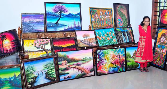 Трудно поверить в то, что эти картины написаны женщиной, которая родилась без рук. Работы Свапны Августин (Swapna Augustine).