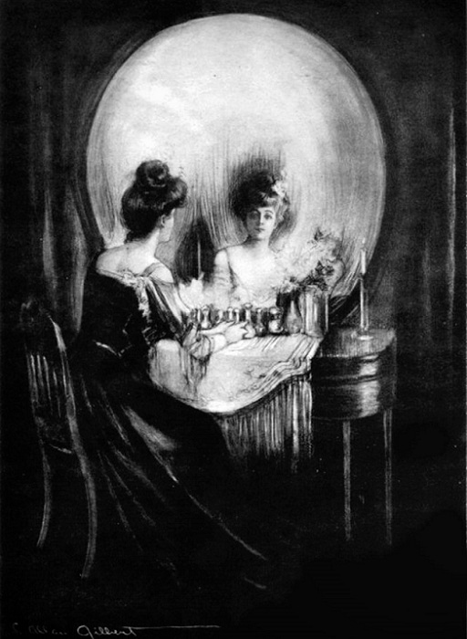 Художник Чарльз Аллан Гилберт удивил общественность своей картиной «All is Vanity». На полотне изображена женщина, любующаяся своим отражением в зеркале. Достаточно тривиальный сюжет, если бы не одно «но». Если смотреть на картину на расстоянии, то туалетный столик и отражение дамы складываются в пугающий череп. Название картины представляет собой игру слов. Vanity с английского означает «суета», «тщеславие», «туалетный столик», поэтому название картины можно растолковать и как «Все безделушки с туалетного столика» и «Все тщетно». Последним автор намекает на недолговечность женской красоты.