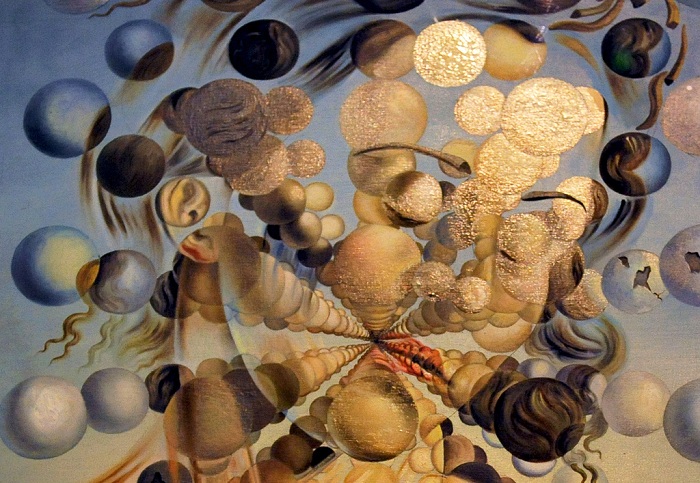 Говоря об иллюзиях и экстраординарном творчестве, нельзя не упомянуть Сальвадора Дали. В период увлечения ядерной физикой, художник создал полотно «Галатея со сферами». Образ Галатеи (Галы – супруги Дали) складывается из множества планет, уходящих вдаль. Симметричность сфер придает картине 3D-эффект, кажется, что картина выпуклая.