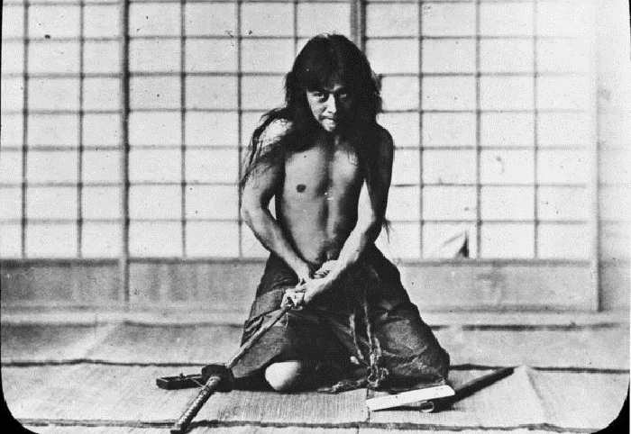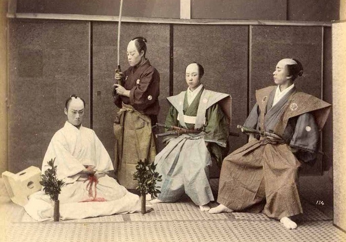 Сэппуку совершалось при множестве свидетелей. К тому же над самоубийцей стоял кайсяку – воин, который после харакири должен был отрубать голову самураю, дабы никто не видел искаженное от боли лицо убитого. Верхом мастерства кайсяку считалось его умение ударить мечом так, чтобы голова осталась висеть на переднем лоскуте плоти шеи и не забрызгала кровью зрителей.