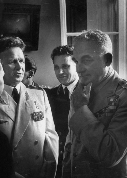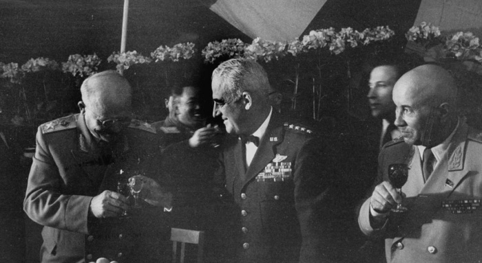 Иван Степанович Конев с бригадным генералом Натаном Твинингом и главным маршалом авиации Павлом Федоровичем Жигаревым.
