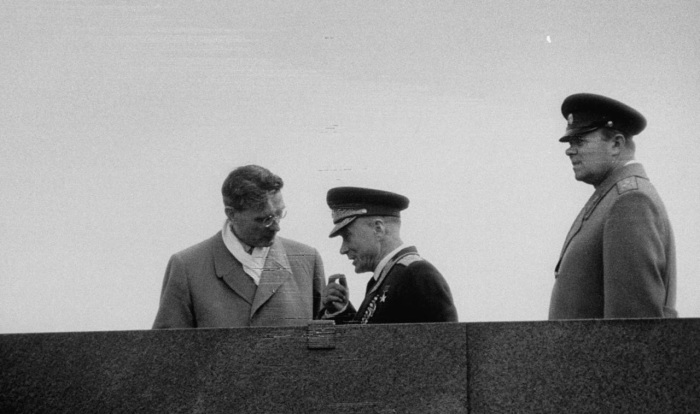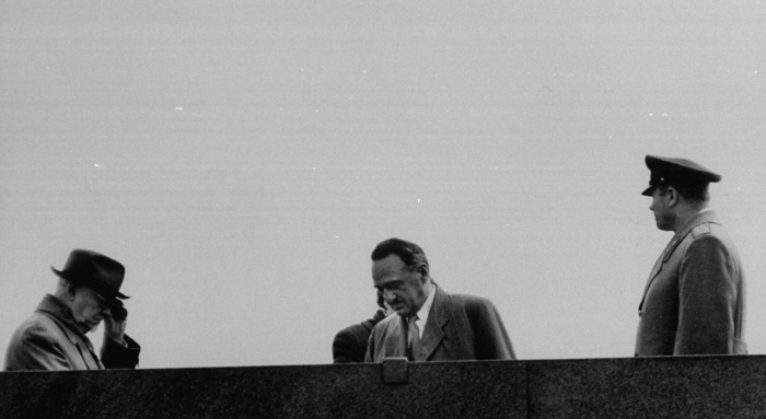 Михаил Андреевич Суслов наблюдает за ходом Первомайского парада.
