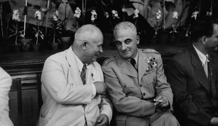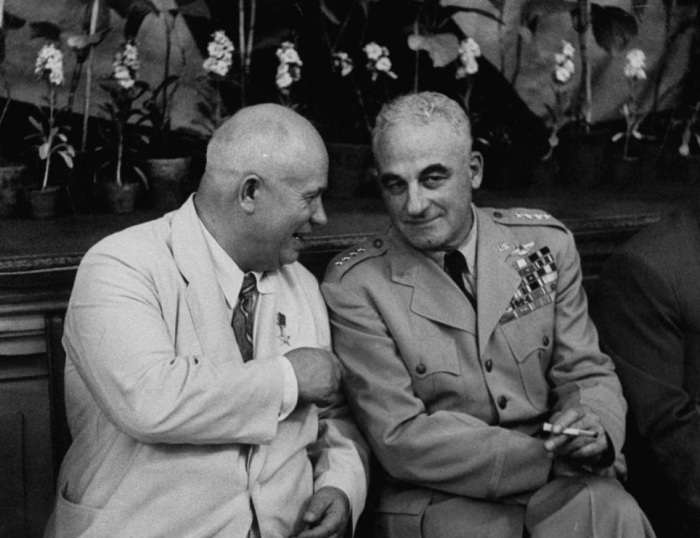 Никита Хрущев беседует с бригадным генералом Натаном Твинингом.