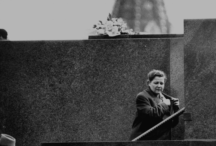 Екатерина Алексеевна Фурцева поднимается на трибуну Мавзолея.