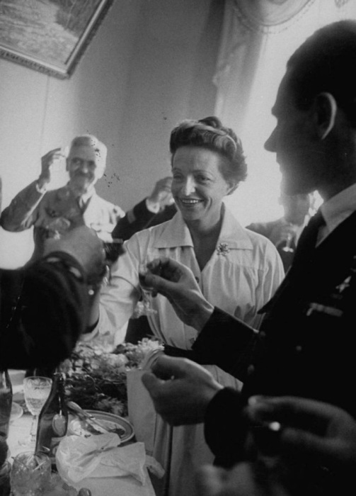 Жаклин Ориоль, первая женщина пилот-испытатель произносит тост на приеме, организованном после окончания авиашоу.