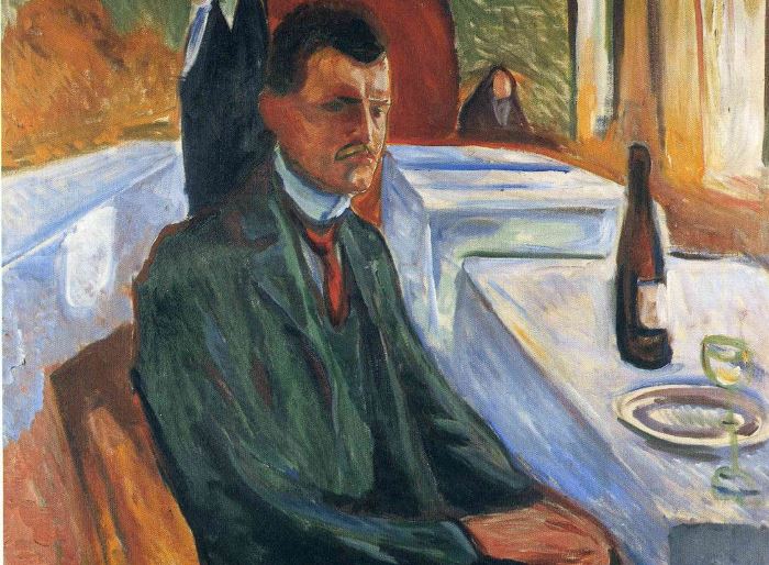 Эдвард Мунк. Автопортрет с бутылкой вина, 1906 | Фото: artchive.ru