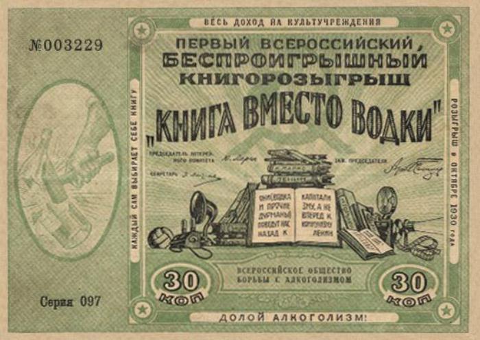 При помощи лотерей проводилась антиалкогольная кампания (все участники могли гарантированно получить книгу, чтобы развлечь себя на досуге). Розыгрыши помогли и в приобщении сельского населения к новой технологии – использованию радиоприемников. Их выдавали в качестве призов на Всесоюзной радио лотерее в 1929 году.