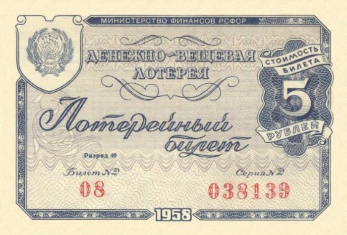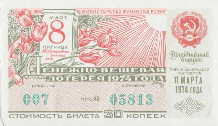 «Кто возьмет билетов пачку, тот получит водокачку», - этот призыв управдома из фильма «Бриллиантовая рука» помнит каждый. Однако мало кто помнит, что в советские годы выиграть в лотерею можно было гораздо более интересные призы. Так, участники первой лотереи СССР могли сорвать джек-пот в 30 миллиардов рублей!