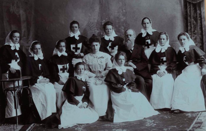 Жена Пермского Губернатора Наумова с сестрами милосердия.