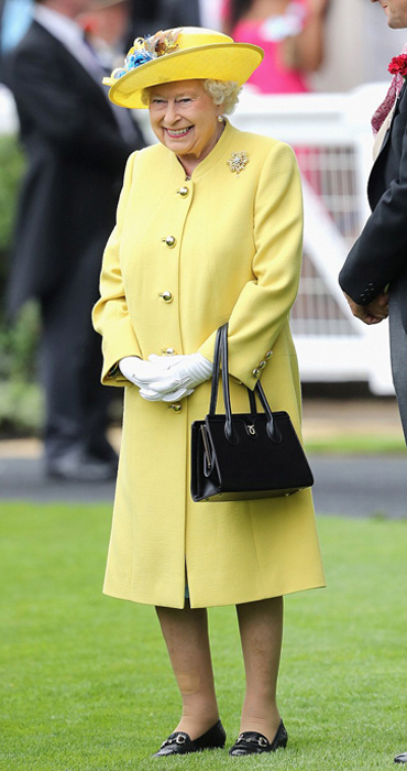 При любой погоде и при любой встрече у королевы имеется при себе аккуратная сумочка.