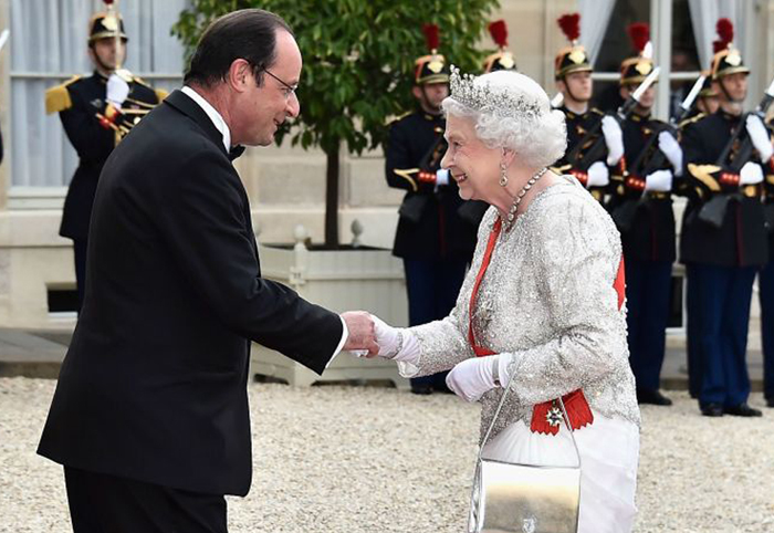 Если королева поставила сумочку во время мероприятия на стол, а не на пол, значит Ее Величиство собирается вскорости уходить.