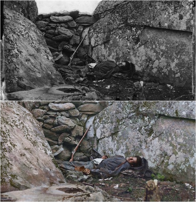 Усыпанный валунами холм под названием «Логово дьявола» (Devil's Den) использовался артиллерией и пехотой во время Гражданской войны в Америке.