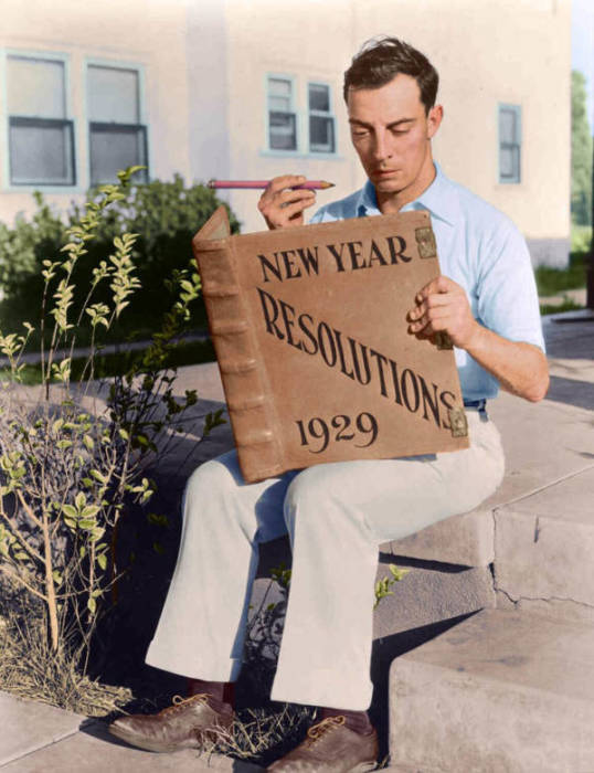 Бастер Китон читает принятую в 1929 году резолюцию.