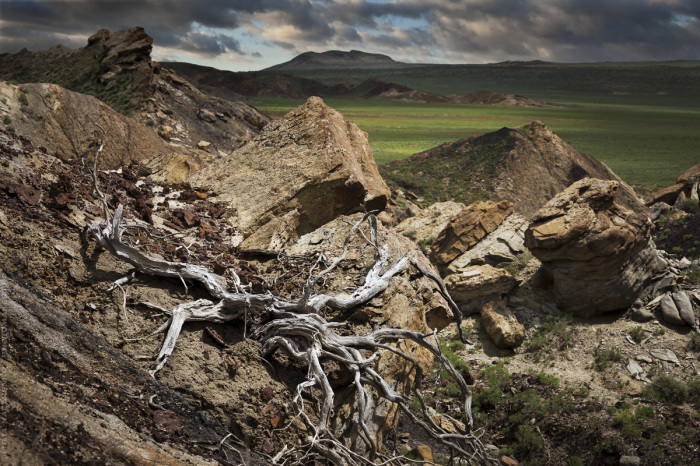 Высохший черный саксаул на вздыбленных вулканических породах. / Фото: Юля Назаренко.